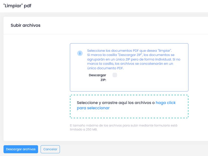Desde esta zona podrá aplanar PDFs para su trabajo habitual, no quedarán guardados en la plataforma.